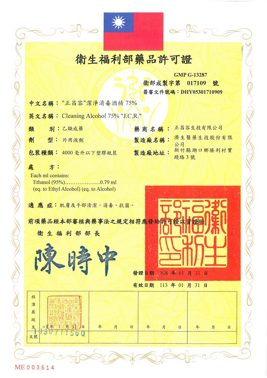 License number: 衛部成製字第017109號