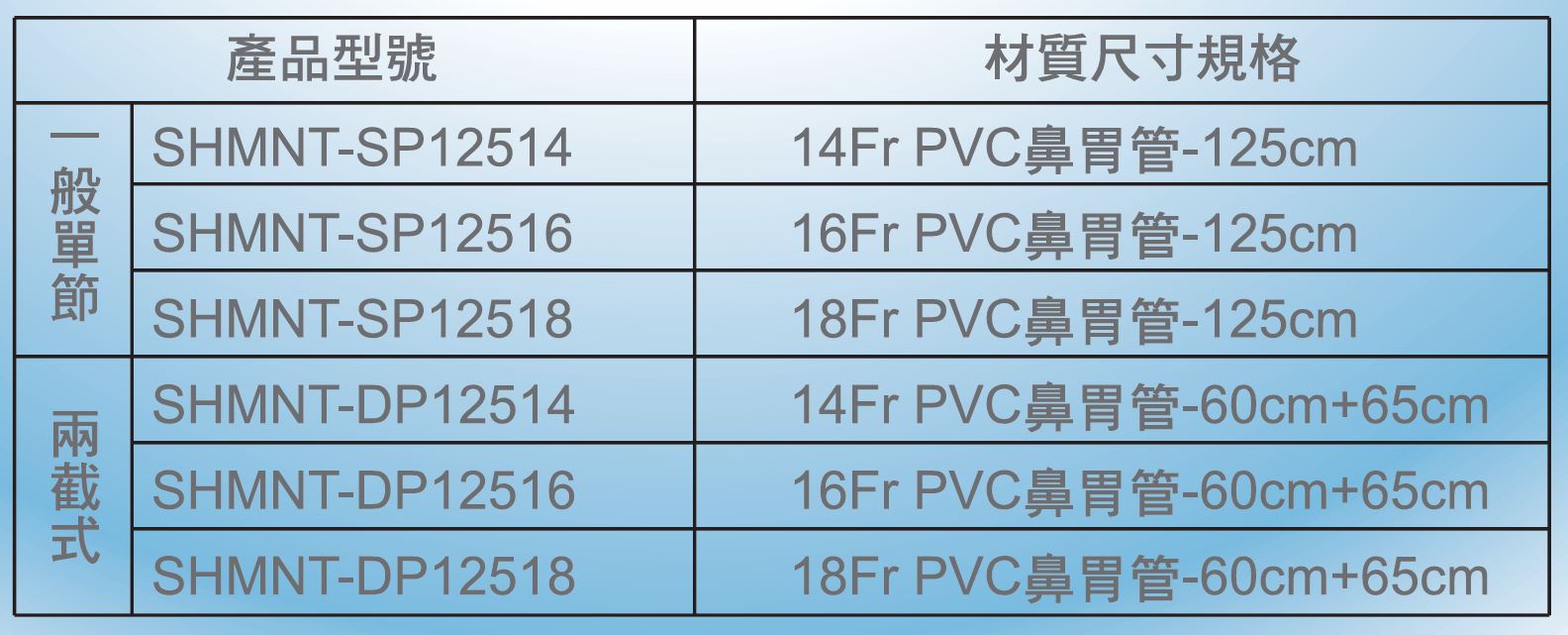 1.「正昌容」鼻胃管分為一般單節式與兩截式,採用PVC柔軟材質。